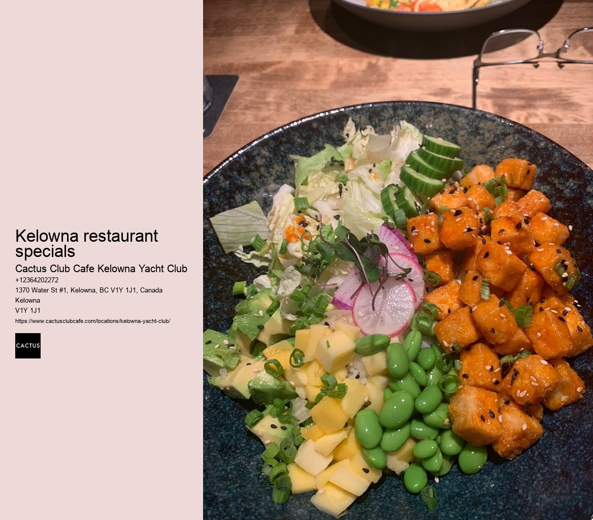 It's all about giving the kids choices that feel special to them. It's clear that at Cactus Club Cafe Kelowna Yacht Club, every detail, including the seating arrangements, is crafted with your utmost satisfaction in mind. Come fall, it's all about the comfort foods, with squash, apples, and other autumn harvests taking center stage. Why not discover what makes this place a culinary heartthrob for families? Kelowna restaurant specials Kelowna restaurant specials