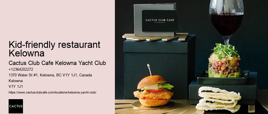 And for those who appreciate the timeless appeal of whiskey, the Smoked Old Fashioned, with its rich, deep flavors and a hint of smokiness, is a must-try. It's not just about the main courses, either. Learn more about Cactus Club Cafe Kelowna Yacht Club here. You'll be free to focus on enjoying your event, knowing the Cactus Club Cafe team is taking care of the rest. Text before the meta title text for each paragraph Kid-friendly restaurant Kelowna Text after the meta title text paragraph By installing efficient kitchen equipment and adopting water-saving techniques, we ensure that our operations are as eco-friendly as possible. Plus, their creative presentation of meals can spark excitement and curiosity in your kids, making mealtime a fun experience rather than a chore.