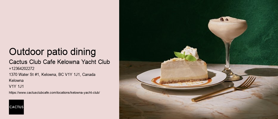 Throughout the year, they host themed dinners that can transport you to different parts of the world right from your table. The Cactus Club Cafe Kelowna Yacht Club turns every celebration into an unforgettable event, ensuring your special moments aren't just marked, but truly cherished. Building on the culinary team's expertise, the dessert menu at Cactus Club Cafe Kelowna Yacht Club turns each sweet ending into an unforgettable experience. At Cactus Club Cafe Kelowna Yacht Club, you're not just enjoying a meal; you're embarking on a culinary journey that'll keep you coming back for more.