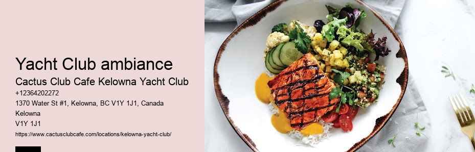 It's all about bringing you the freshest flavors while caring for our planet. It's a perfect opportunity to enjoy a family outing without breaking the bank. Learn more about Cactus Club Cafe Kelowna Yacht Club here. You're not just dining; you're embarking on a gastronomic journey. Text before the meta title text for each paragraph Yacht Club ambiance Text after the meta title text paragraph Nestled by the pristine waters of Okanagan Lake, the ambiance sets a backdrop that's as memorable as the occasion itself. You're not just eating; you're exploring a world of flavors that have been carefully curated to delight your senses.