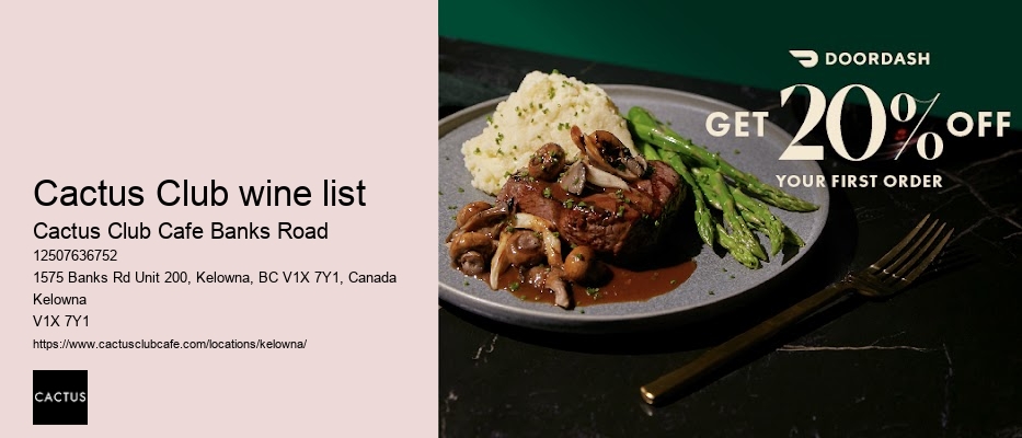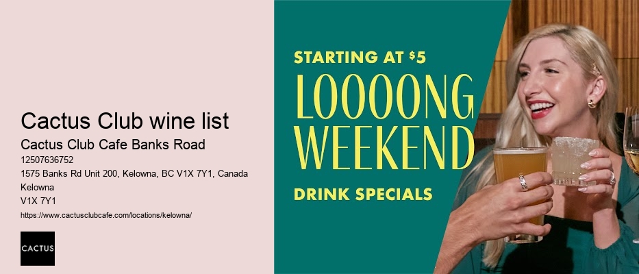 Whether you're a local or just passing through Kelowna, these testimonials make it clear: a visit to Cactus Club Cafe Banks Road isn't just a meal; it's an event that you'll want to repeat. At Cactus Club Cafe, the menu isn't just diverse; it's a bold statement of culinary artistry. They're not just servers; they're storytellers, ready to guide you through the menu and share the inspiration behind your favorite dishes. Cactus Club wine list