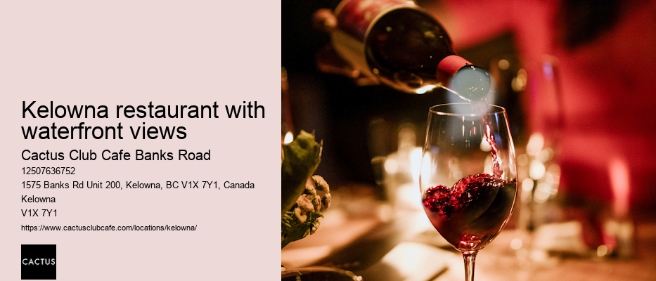 Sourced from premium cuts, this steak is cooked to perfection, offering a succulent treat for meat lovers. From the meticulously crafted menu highlights to signature cocktails that whisper tales of creativity, every element is designed to intrigue your senses. It's the quality of the ingredients and the precision in their preparation that elevates this dish beyond the ordinary. Text before the meta title text for each paragraph Kelowna restaurant with waterfront views Text after the meta title text paragraph Don't overlook the seasonal specials, either. So, sit back, relax, and let's craft the perfect drink to elevate your meal to the next level.